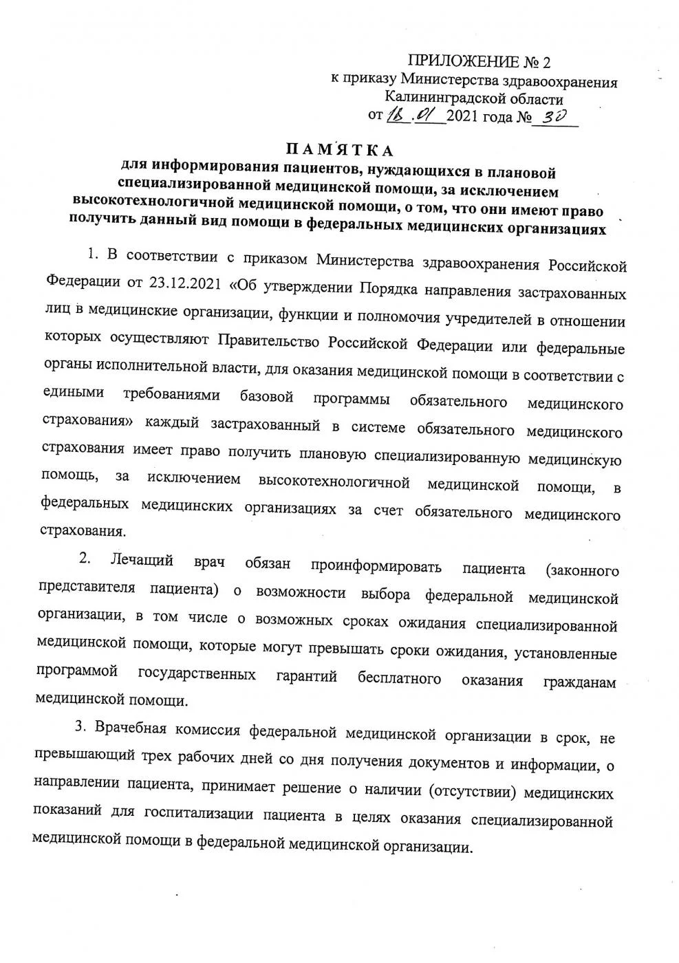 | Памятка для информирования пациентов, нуждающихся  в плановой специализированной медицинской помощи Опубликован 24.01.2021 | Памятка о том, что пациенты, нуждающиеся в таком виде помощи, могут получить ее в федеральных медицинских организациях | 0.17 Мб |  |