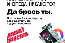 Помогает сказать «нет» курению электронных сигарет, вейпов и иных устройств сообщества «Давай бросать» в мессенджере «Телеграм» и в социальной сети «Вконтакте», которое развивается по нацпроекту «Продолжительная и активная жизнь».
